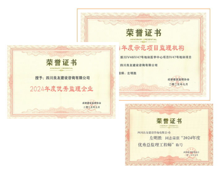 此外,我司監(jiān)理項目“新川IV46IV47號地塊醫(yī)學(xué)中心項目IV47號地塊項目”也榮獲“2024年度示范項目監(jiān)理機構(gòu)”,該項目總監(jiān)左明勝獲評“2024年度優(yōu)秀總監(jiān)”。